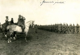 “No visām pusēm plūst pa vārtiem iekšā mūsu pulka rotas, un rindām stājot, virsniekiem laižot viņas no rokām, sāk dūkt no tūkstots balsīm, dimd no divtūkstoš kāju dūņas kazarmkorpusi kā milzīgs bišu dārzs.