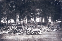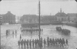 Negaidīdami pavēles, mēs sākām ģērbties, aunam kājās zābakus un steidzam sakravāt savas mantas. Kad no kancelejas atgriežas tēvs, vadu komandiera pavadīts, rota jau izrindojusies gājiena gatavībā, — atliek tikai tvert rokās šautenes.