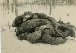 “Lien ašāk iekšā vācu žogos un sāc strādāt ar šķērēm, gan tad paliks silti,” čukst cita balss, un baltos sniega mēteļos tērptie stāvi, galvas seguši baltām kapucēm, bez trokšņa un solu šalkas tālāk slīd pa krūmu un pareto koku starpu. Uz to pusi, kur vācu dzeloņžogu stabi jau sāk līst ārā no sniega kupenām.