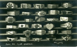 Pielietojuma ziņā mazāk bīstama strēlnieku darināto priekšmetu grupa bija rotaslietas – gredzeni un rokassprādzes. Daudzi no tiem bija īsti juvelieru mākslas darbi. Tie bija dažādu izmēru, jo domāti gan pašiem karavīriem, gan arī kā dāvana mīļotajām meitenēm, sievām un mātēm. Gredzeni atšķīrās ne tikai pēc izmēra, bet arī pēc rotājuma. Ja sievietēm domātajos gredzenos dominēja sirsniņas, lauztas sirdis, ziedu motīvi, tad vīriešu gredzenos - tas , kas karavīram tuvāks - formas tērpa siksnas sprādze, zirga galva, alus muca, vairogs ar iešautu bultu, miroņgalva kā karaspēka triecienvienības simbols. Tomēr lielākoties strēlnieku gredzeni bija rotāti ar latviešu rakstu zīmēm. Tā bija piecstaru zvaigzne jeb lietuvēna krusts, kas tautā uzskatīts par labāko līdzekli pret ļauniem gariem un kam piemita aizsargājoša funkcija. Šo zīmi latviešu zemnieki vilka uz kūts durvīm, iestrādāja mājas pakšos, jo bieži vien latvietis uz rakstu zīmēm paļāvās kā uz burvestības vārdiem. Šādu nelaimes atvairīšanas spēku piedēvēja arī krusta zīmei, kas simbolizēja gaismas uzvaru pār tumsu. Taču visizplatītākais ornamenta elements latviešu strēlnieku gredzenos bija saule - mūžīgās kustības, dzīvības, siltuma un visa labā simbols. Gredzenos tā attēlota gan tieši - kā saullēkts uz jūras, gan latviešu rakstos sastopamās rozetes, puķes un rata formā. Šīs karalaika darinājumos iestrādātās zīmes latviešu strēlnieki ienesa no savas iepriekšējās miera laika dzīves - no mājās redzētiem adītiem cimdiem, izšūtiem dvieļiem un galdautiem, no vecāku stāstiem un teikām. Taču vistiešākā saikne ar mājām bija vēstules, kuras strēlnieki bieži vien rakstīja uz pašu zīmētām atklātnēm. Tās bija darinātas gan no kartona, gan no koksnes un bērzu tāss. Dažas no tām bija pat īsti mākslas darbi.