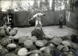 Strēlnieku sporta svētkos bieži uzstājās arī strēlnieki - cīkstoņi. Tajā laikā tas vairāk bija teatrāls priekšnesums nevis sporta veids, jo arī miera laikā cīkstoņi un svarcēlāji piedalījās cirka izrādēs. Sporta svētki parasti noslēdzās ar koncertu un strēlnieku dramatiskā pulciņa izrādi. Šādu pasākumu savās atmiņās apraksta 1. Daugavgrīvas latviešu strēlnieku bataljona strēlnieks Fricis Riekstiņš: „Sarīkojām divas reizes sporta sacīkstes. Pirmās sacīkstes notika 1916. gada 28. augustā. Bija dažāda veida sacīkstes piemērotas pozīciju dzīvei un vajadzībām. Piemēram, skriešana ar kavēkļiem (dažādu ierakumu pārvarēšana, stiepļu žogu griešana utt.), rokas granātu mešana, lēkšana, kokā kāpšana, staigāšana pa baļķi, futbols un dažādas citas spēles. Interesanta, ar lielu praktisku nozīmi bija pašierakšanās. Daudzos gadījumos kaujā virzīšanās uz priekšu iespējama vienīgi ar pašierakšanos.